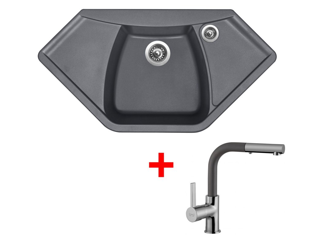 Granitový dřez Sinks NAIKY 980 TitaniumGranitový rohový dřez Sinks NAIKY 980 vyniká kvalitou použitých materiálů, díky čemuž je na něj poskytována prodloužená záruka 10 let. Dřezy obsahují 84 % jemného kameniva, což ve spojení s kvalitním akrylátovým pojivem zaručuje dokonalou hebkost, pevnost a odolnost materiálu.