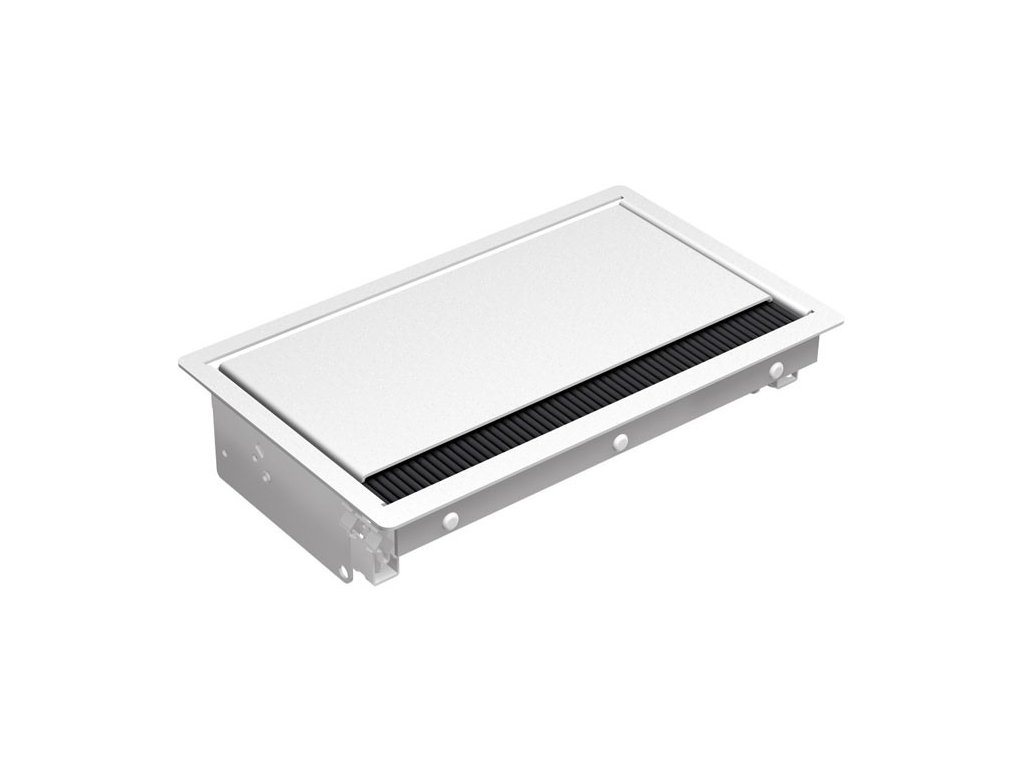Bachmann Coni vestavný rámeček krátký bílý. Vestavná hloubka činí 56 mm, je vhodná pro desky s tloušťkou od 10 mm. Zaoblení okraje umožňuje zalícování do desky stolu. Těsnící kartáčové lišty lze bez použití nástrojů vyměnit za barevné provedení.