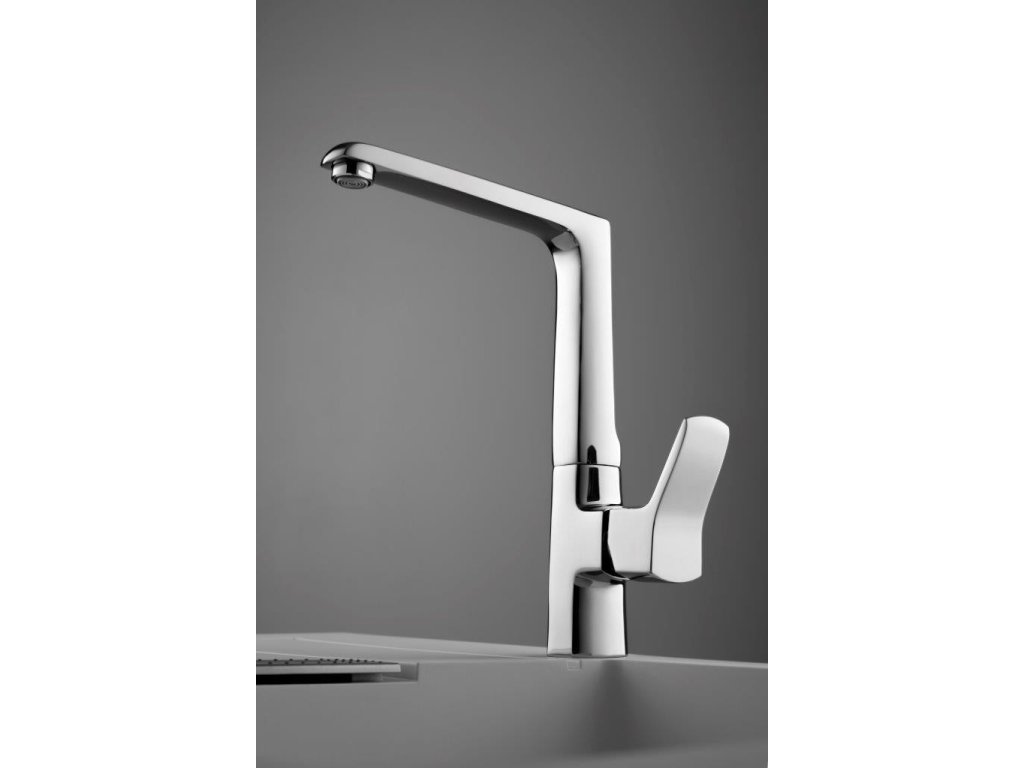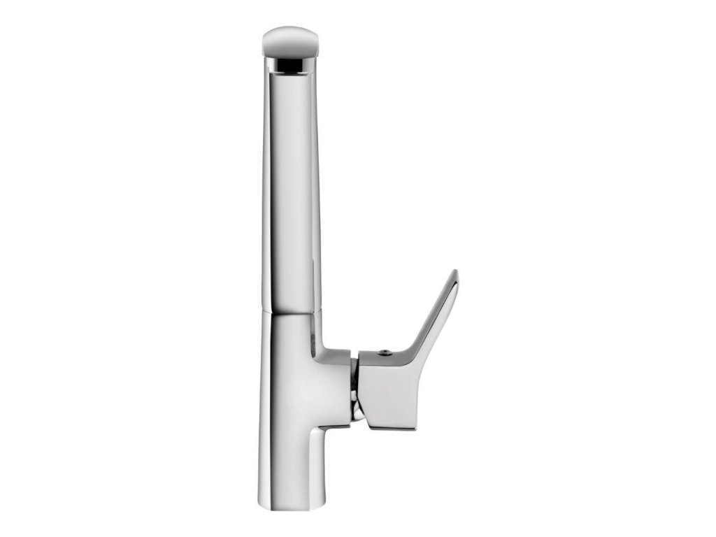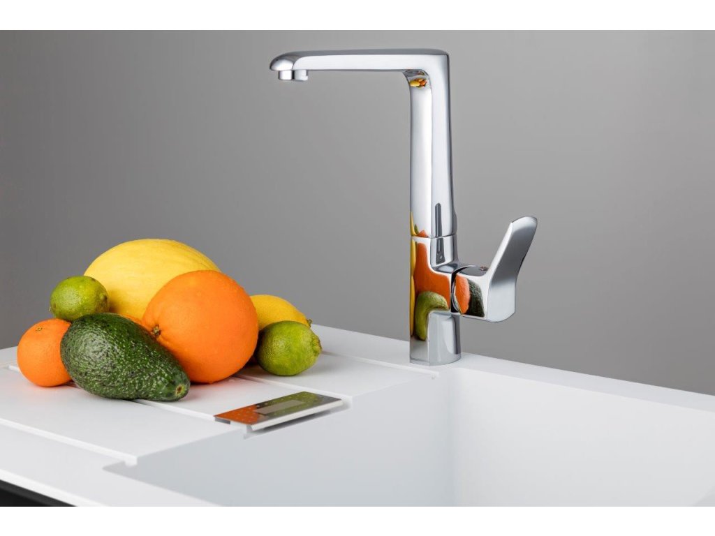 Vysoko posazený výstup vody, který je otočný o 360° poskytuje velký prostor pro snadné a pohodlné používání baterie u kuchyňského dřezu. Umístění pákového ovladače baterie je ergonomicky řešeno tak, že i při držení velkého hrnce je snadné baterii ovládat.