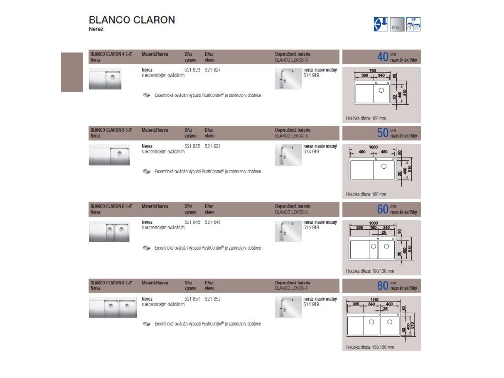 BLANCO CLARON S-IF Tento tvarem krásný dřez působí elegantně a hodí se především do moderních domácností. Plynulý přechod odkapní desky do dřezu v nádherném minimalistickém pojetí.Doplňkové parametry