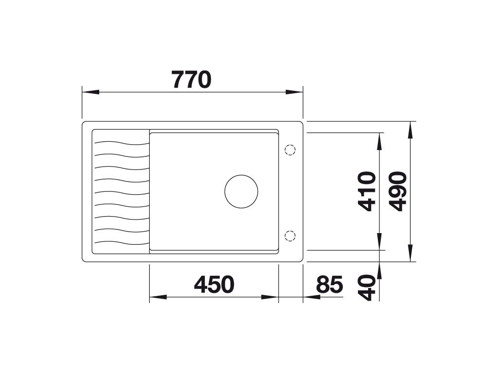 - extra velký dřez s velkorysou odkapovou plochou určen pro montáž do roviny s deskou