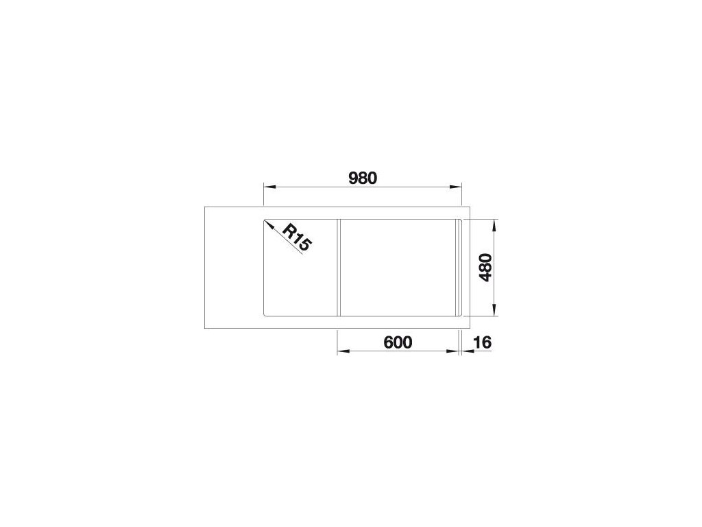 - jednodřez s odkapovou plochou určen pro horní montáž (usazen na pracovní desku)
