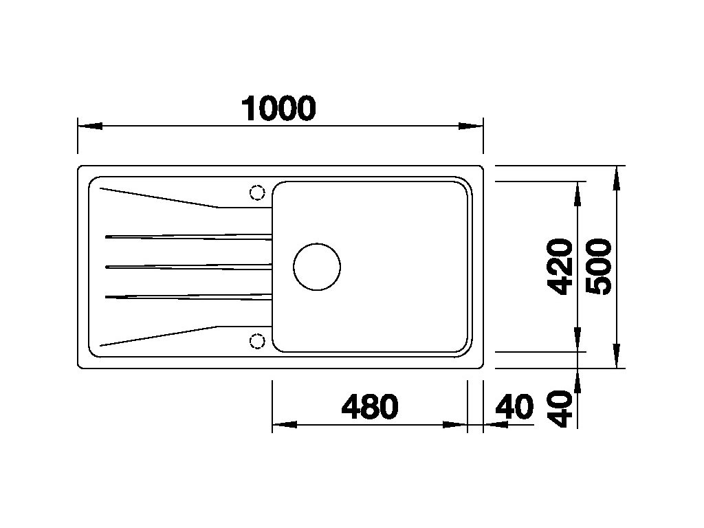 - nadčasový jednodřez s velkorysou odkapní plochou určen pro horní montáž (usazen na pracovní desku)