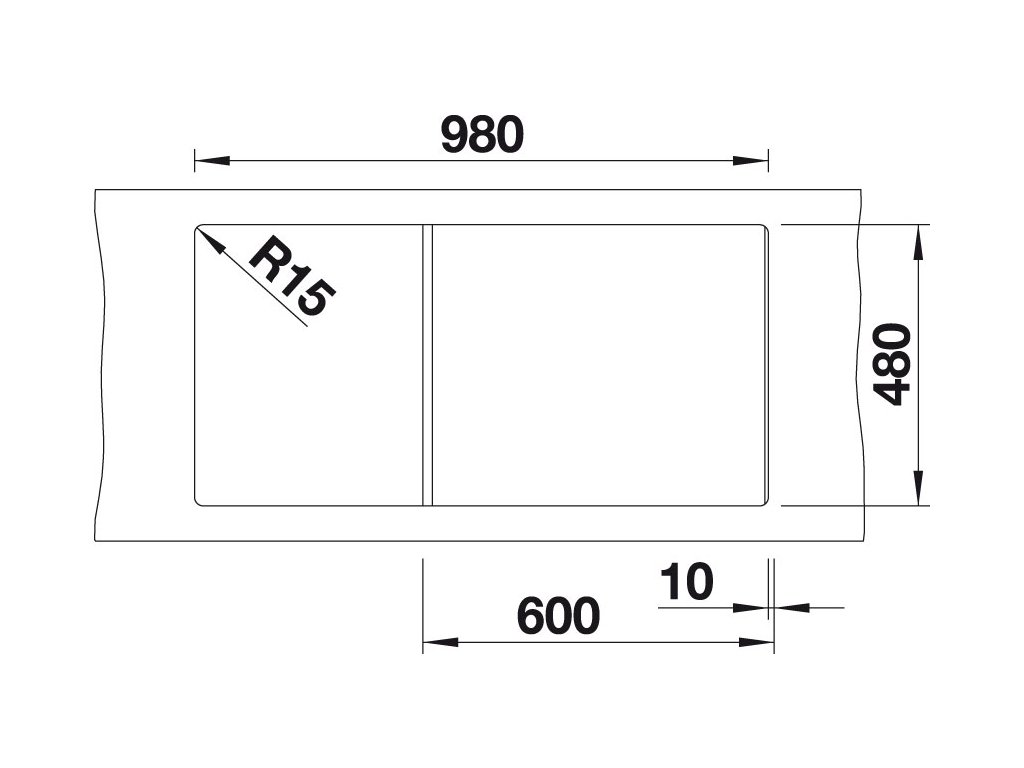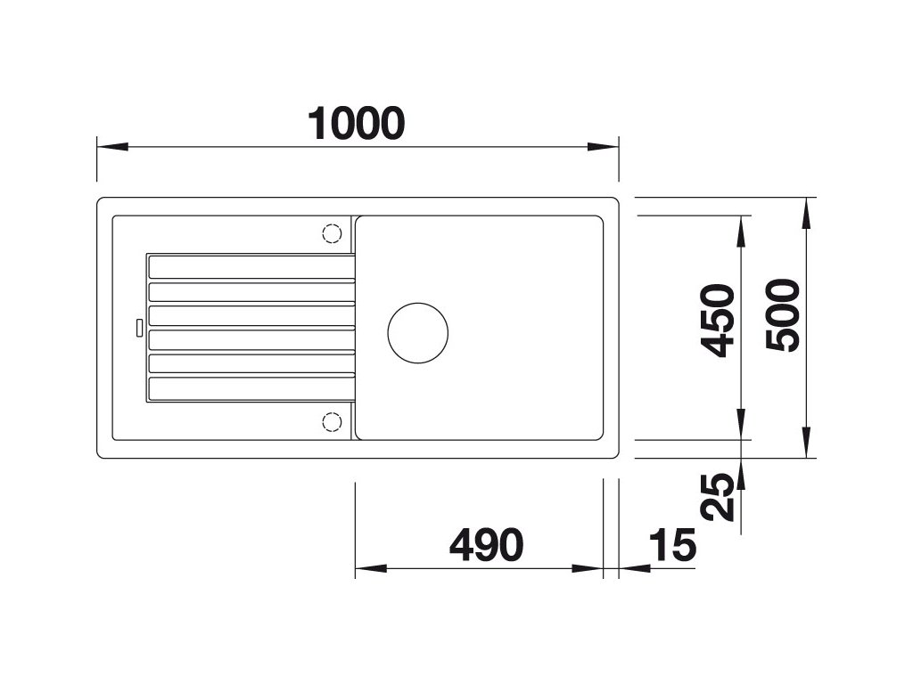 - jednodřez s odkapovou plochou určen pro horní montáž (usazen na pracovní desku)