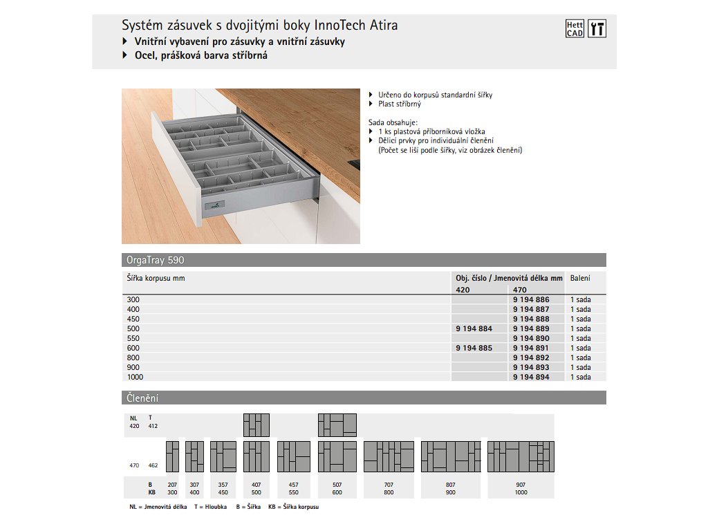 Hettich 9194892 Atira OrgaTray 590 800 x 470 mm stříbrný