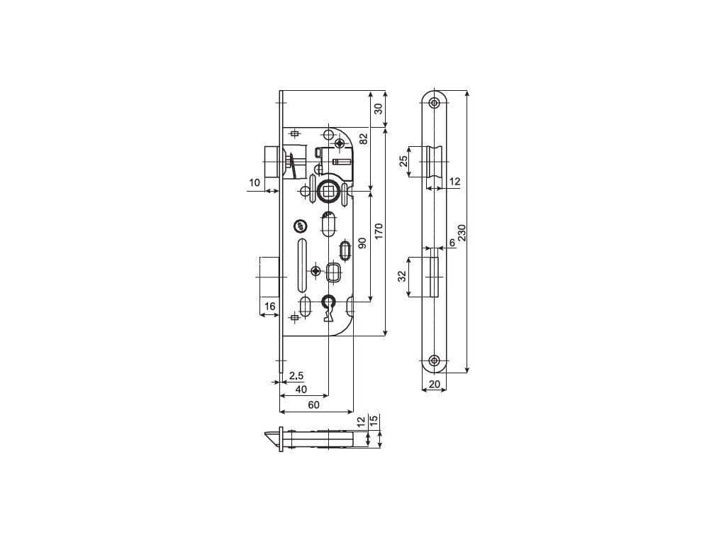 Stavební zadlabávací zámek Hobes 01-15 pro běžný dozický klíč (BB)
