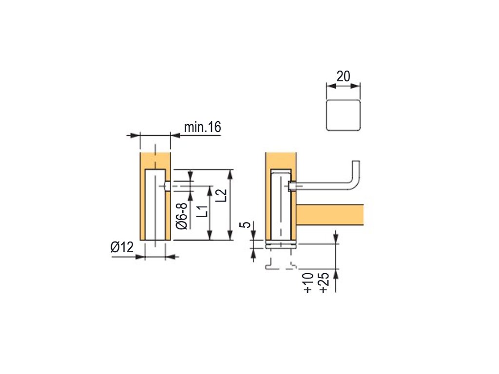 Chytrý výrobek: Nožka kompletně ukrytá v boku (skříně, stolku,…). Neručí tak celkový vzhled a dekor.