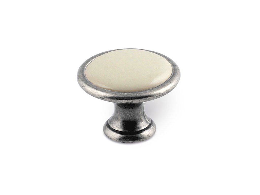 Rustikální knopka AURORA Průměr 29 mm, Povrch: starostříbro Součást balení: 1x M4 šroub Na obrázku je knopka kombinující kov a keramiku v rustikálním stylu. Kovová základna má antik úpravu s jemnou patinou, která vytváří starožitný vzhled. Horní část knopky je ozdobena keramickým prvkem s hladkým glazovaným efektem. Design knopky je jednoduchý, ale díky kontrastu mezi keramikou a kovem působí elegantně. Tento typ knopky by byl ideální pro tradiční nebo vintage nábytek, jako jsou zásuvky, skříňky nebo komody, kde by přidal na jemném dekorativním akcentu.
