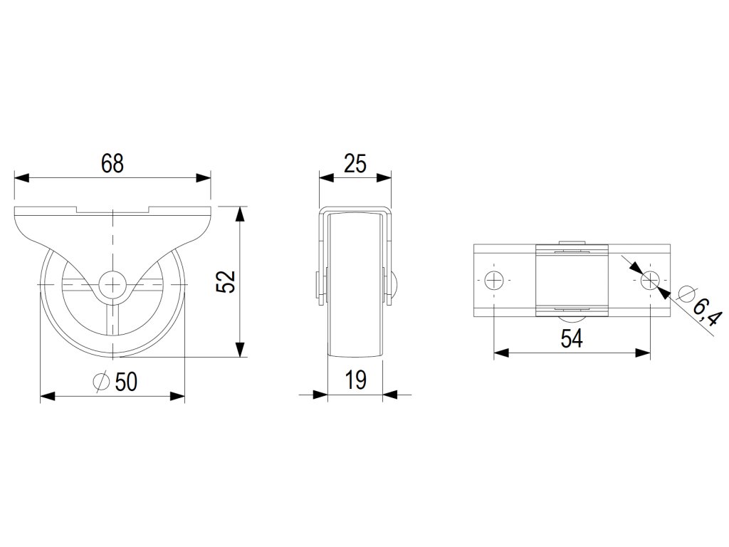 Pevné kolečko průměr 50 mm, šířka 19 mm