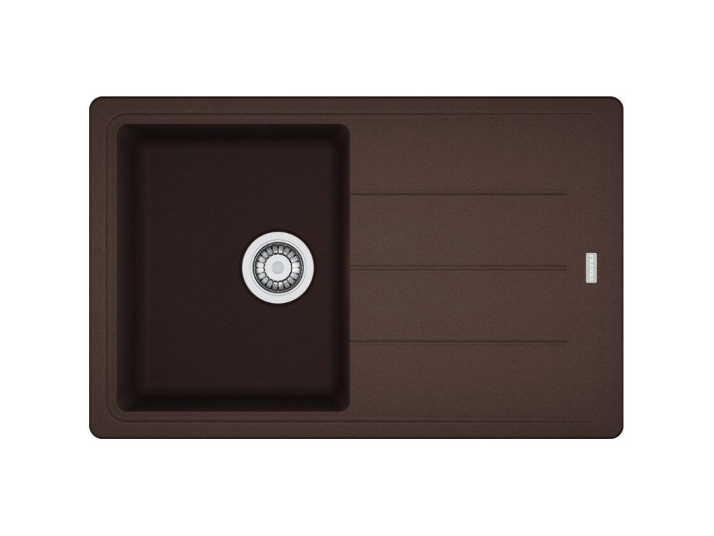 Kuchyňský dřez s odkapem Fragranit Basis BFG 611-78 Tmavě hnědá od výrobce Franke. Dřez je určený pro škříňku od 450 mm. Hloubka dřezu je 200 mm. Rozměr 780 x 500 mm. Dřez je dodáván včetně příslušenství pro montáž, kompletního sifonu s odbočkou na myčku.
