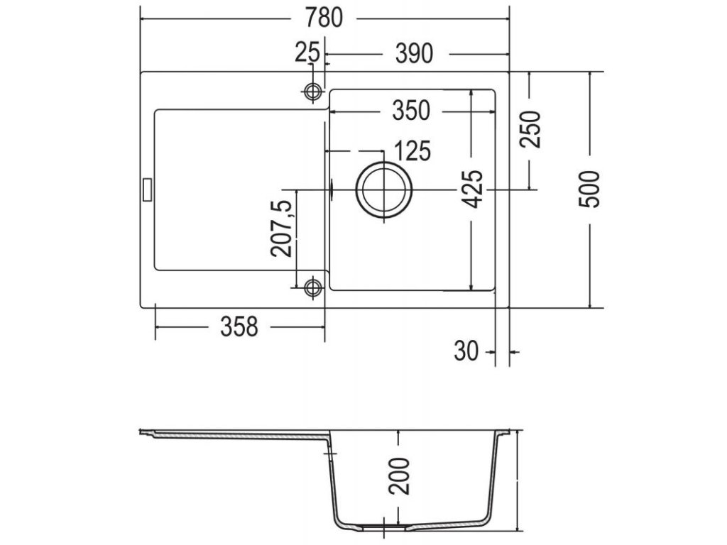 Kuchyňský dřez s odkapem Fragranit Maris MRG 611 Grafit od výrobce Franke. Dřez je určený pro škříňku od 450 mm. Hloubka dřezu je 200 mm. Rozměr 780 x 500 mm. Dřez je dodáván včetně příslušenství pro montáž, kompletního sifonu s odbočkou na myčku.