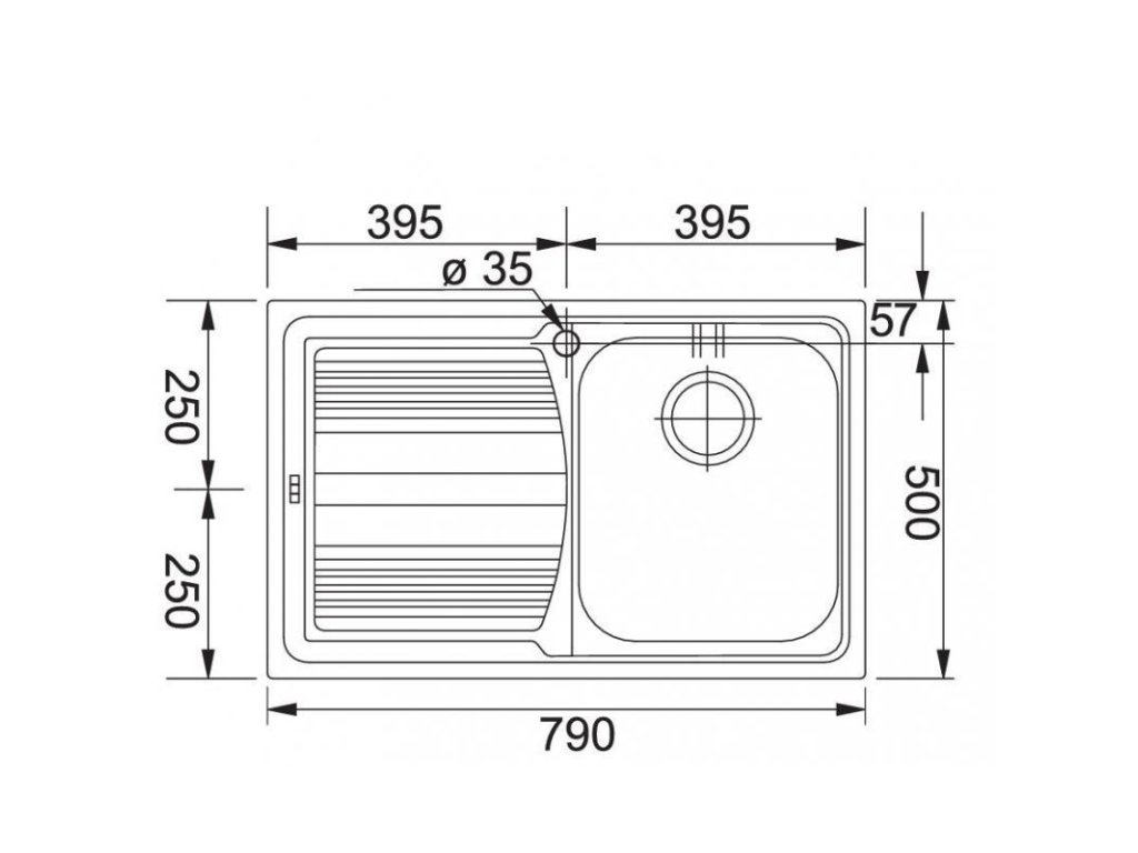 Nerezový dřez LLX 611 od výrobce Franke o rozměrech 790 x 500 mm.
