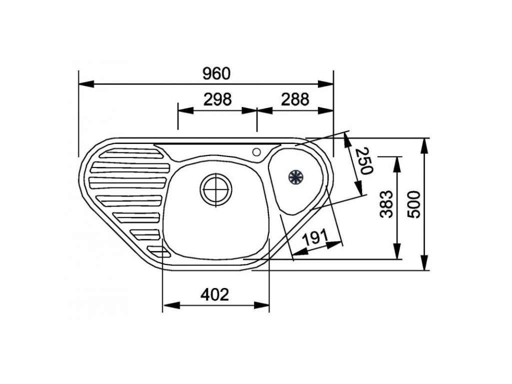 - rohový dřez s vaničkou a odkapní plochou