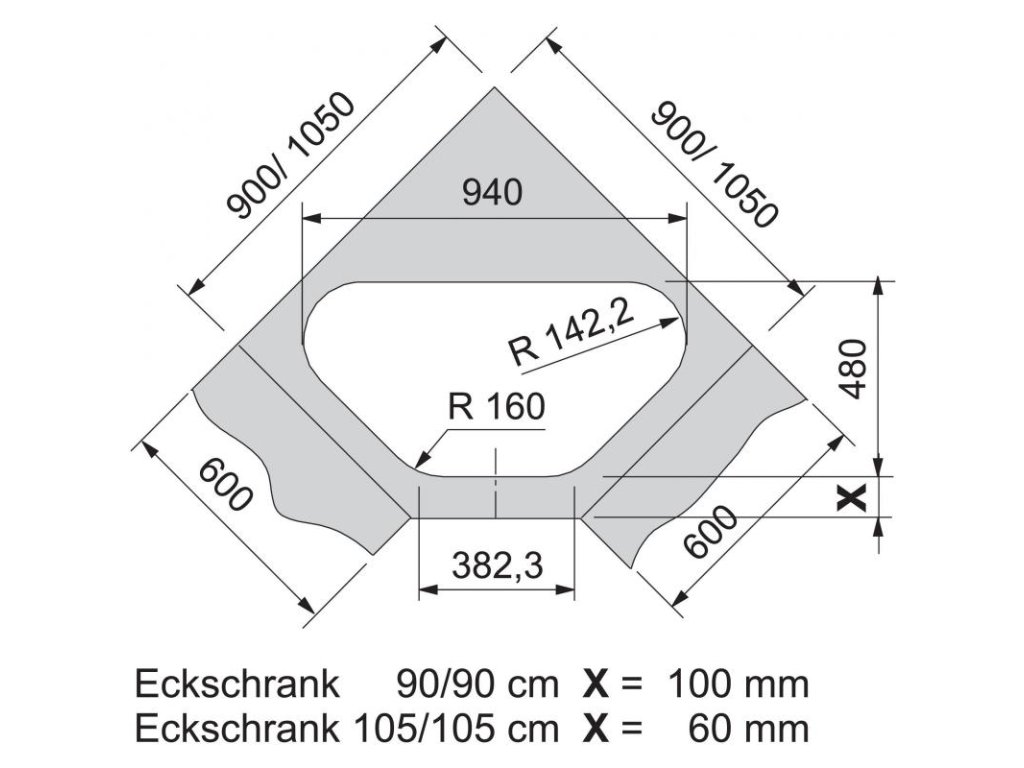 Spodní skříňka: | od 900 x 900 mm |
