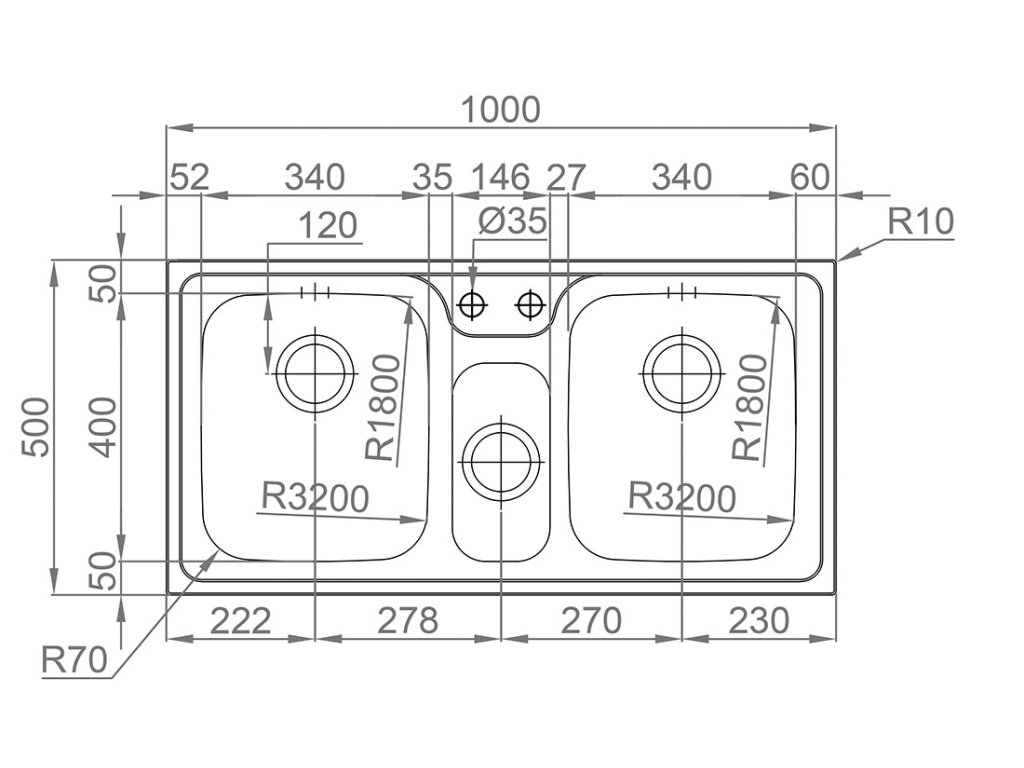 - Rozměr dřezu 1000 x 500 mm