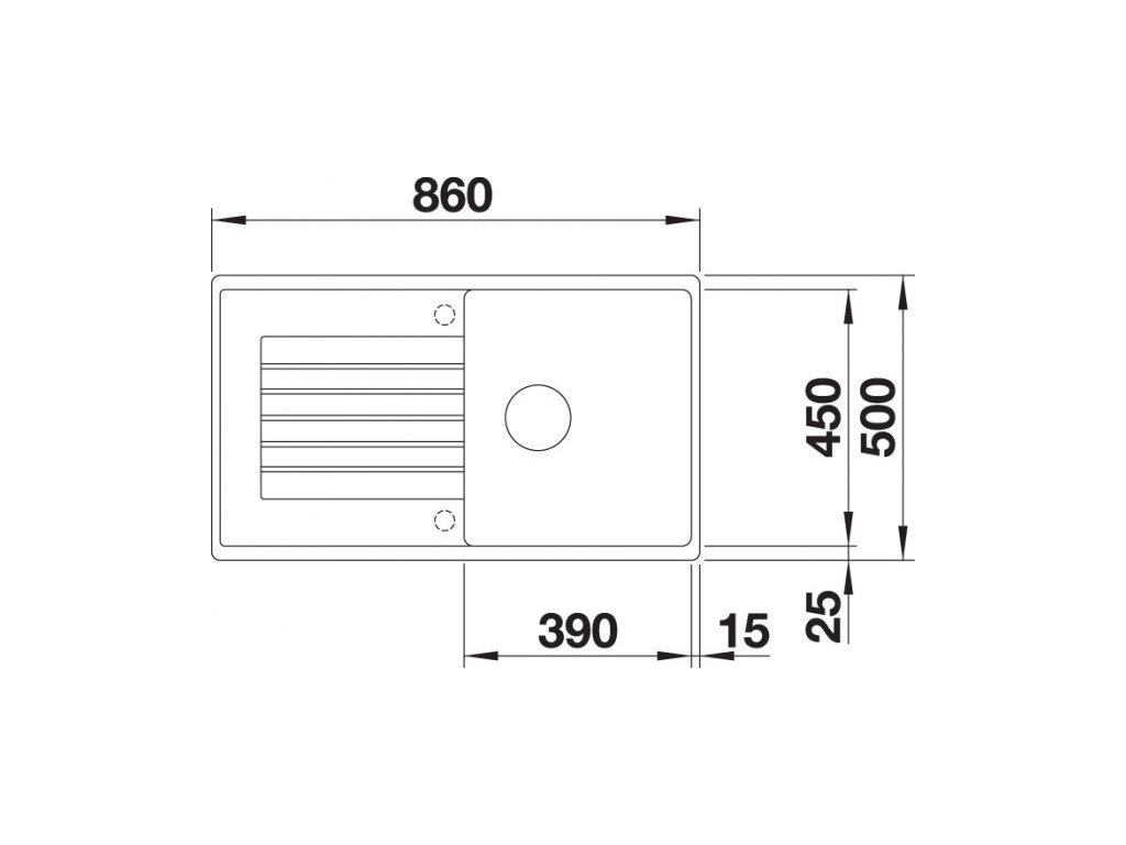 - jednodřez s odkapovou plochou určen pro horní montáž (usazen na pracovní desku)