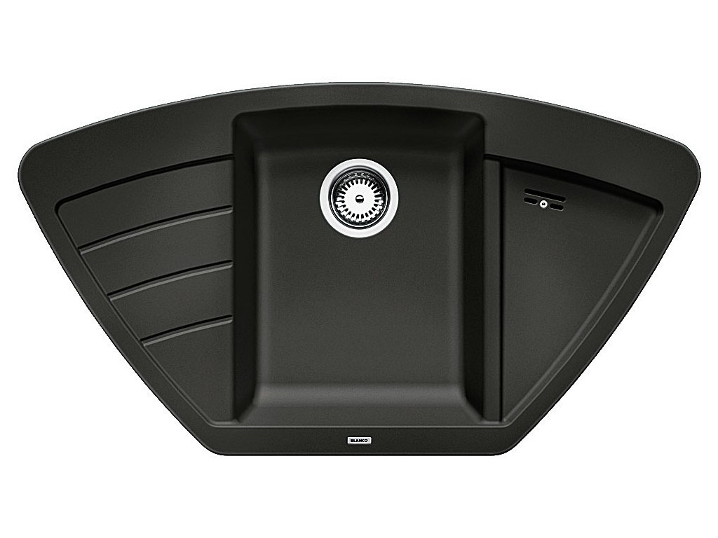 - mimořádně prostorný rohový jednodřez s odkapní plochou a plitkou přídavnou vaničkou určen pro horní montáž (usazen na pracovní desku)
