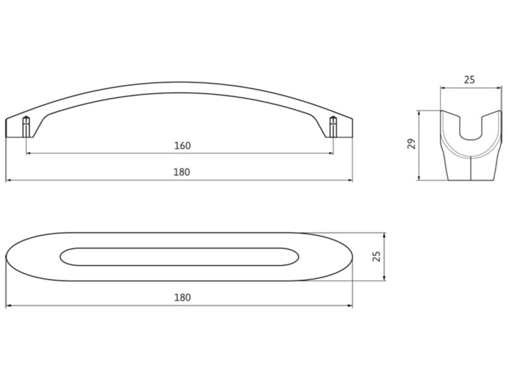 Délka: 180 mm, Rozteč: 160 mm, Šířka: 25 mm, Výška: 29 mm