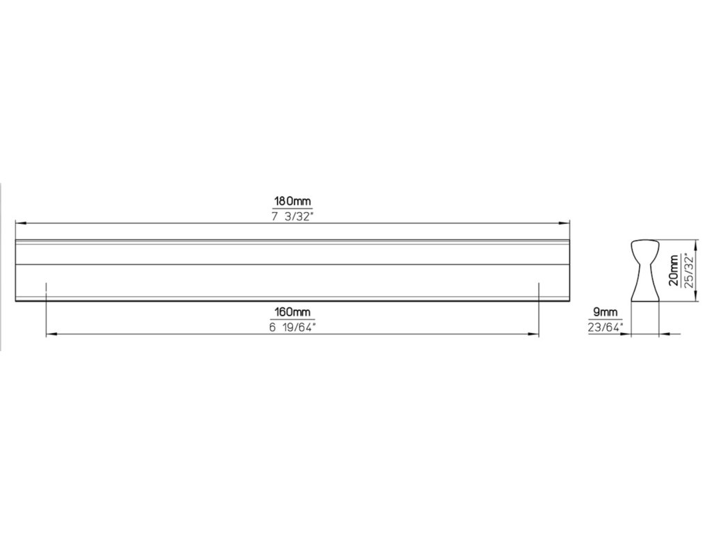 Délka: 180 mm, Rozteč: 160 mm, Šířka: 9 mm, Výška: 20 mm
