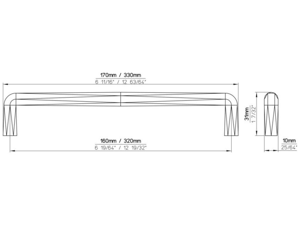 Délka: 330 mm, Rozteč: 320 mm, Šířka: 10 mm, Výška: 31 mm
