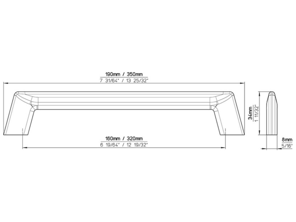 Délka: 190 mm, Rozteč: 160 mm, Šířka: 8 mm, Výška: 34 mm