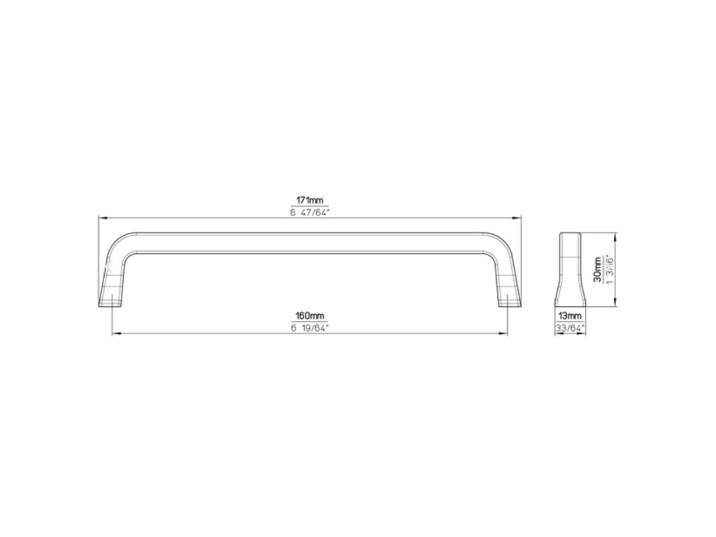 Délka: 171 mm, Rozteč: 160 mm, Šířka: 13 mm, Výška: 30 mm