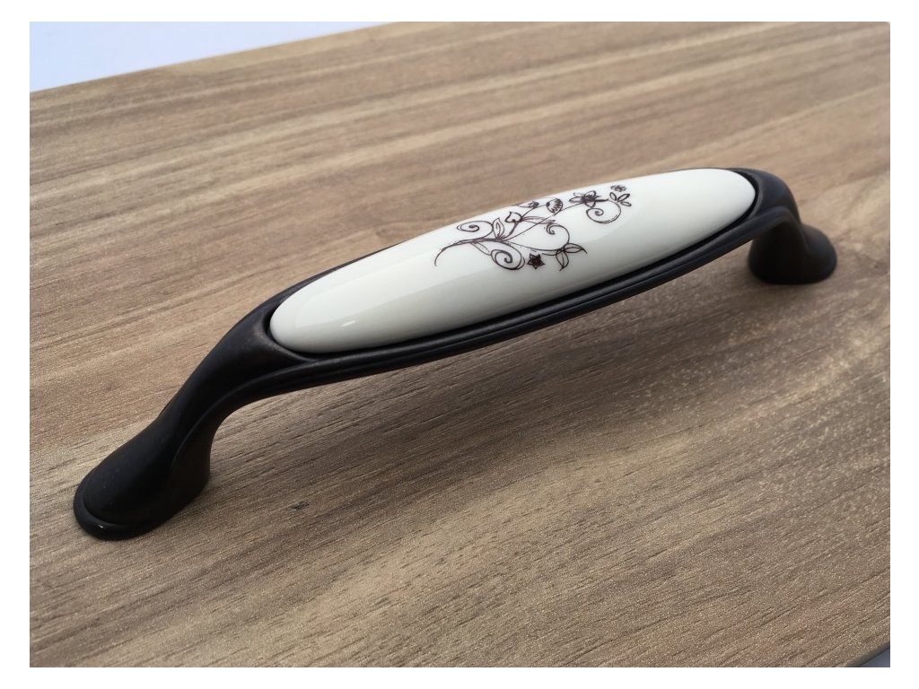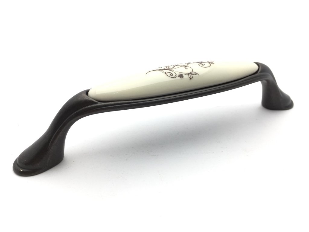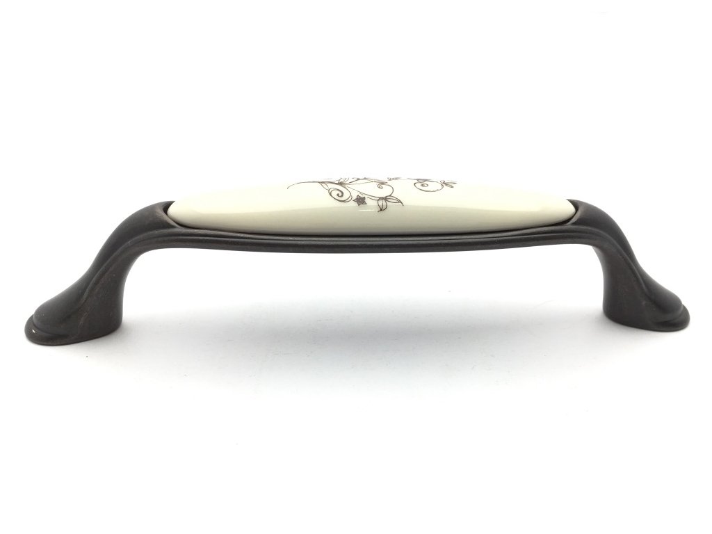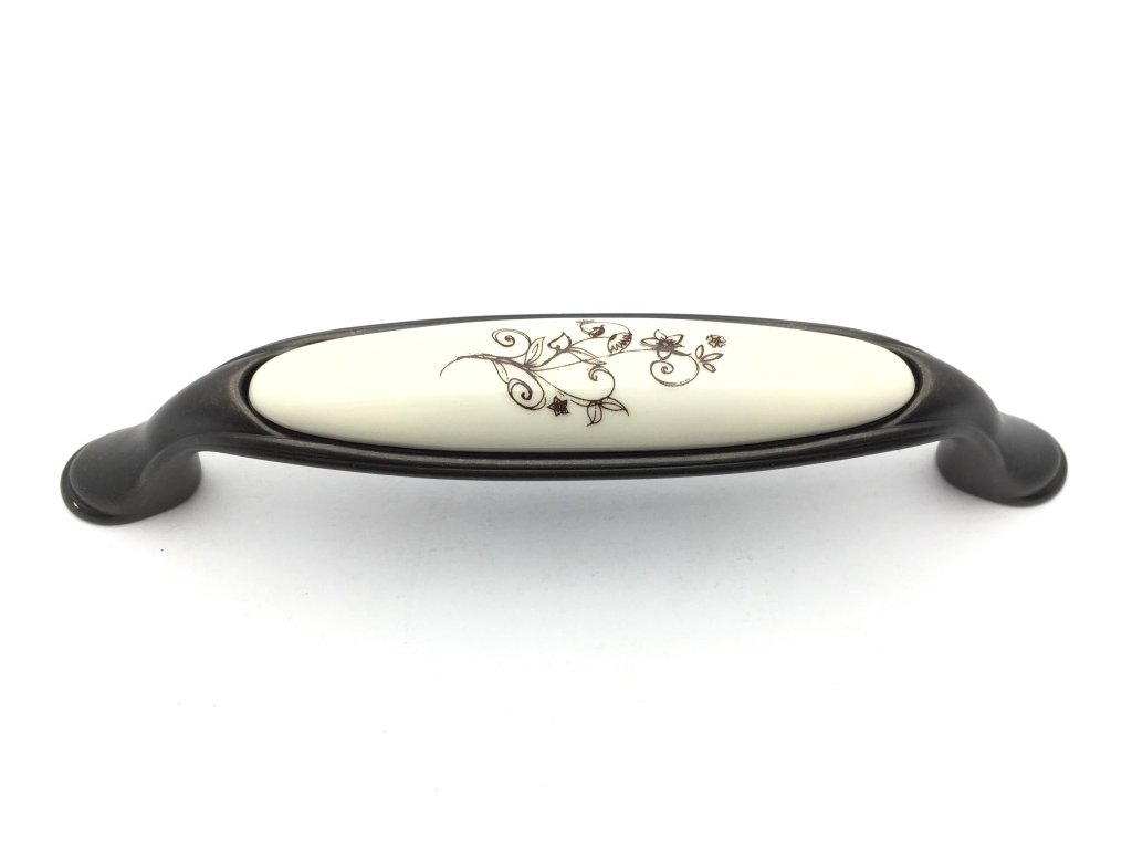 Nábytková úchytka MARGARITA bronz/porcelán béžový/květ