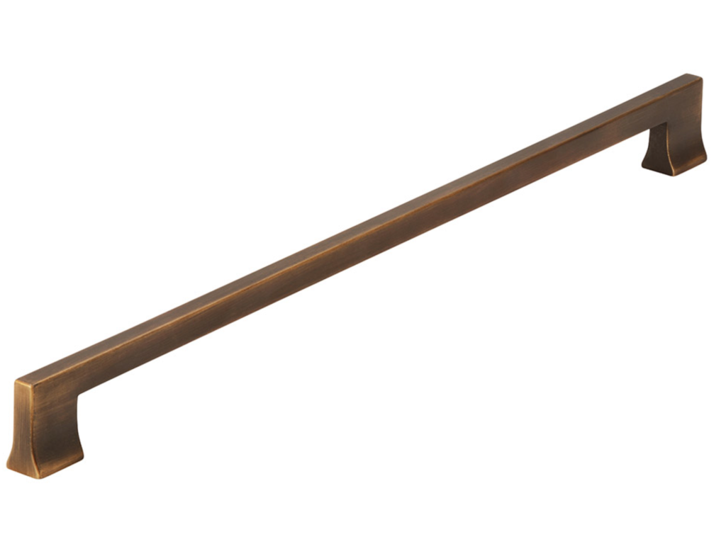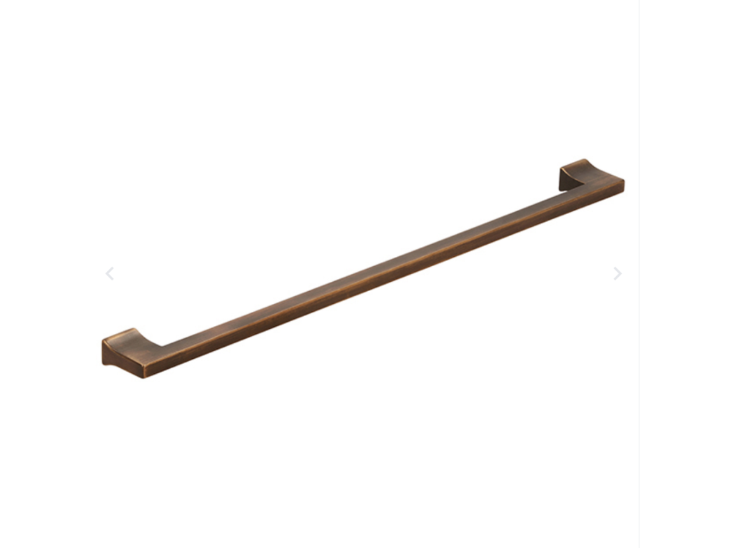Kovová úchytka SANTORINI. Na obrázku je úchytka, která má moderní design a je vyrobena v trendy barvě. Její tvar je lineární a minimalistický, s hranatými konci. Střední část úchytky má texturovaný povrch s jemným vzorem, což dodává úchytce nejen estetický, ale i funkční prvek – zlepšuje úchop. Tento typ úchytky by se mohl hodit do moderních kuchyní, koupelen nebo nábytku s čistými liniemi, kde její detaily zvýrazňují luxusní vzhled.