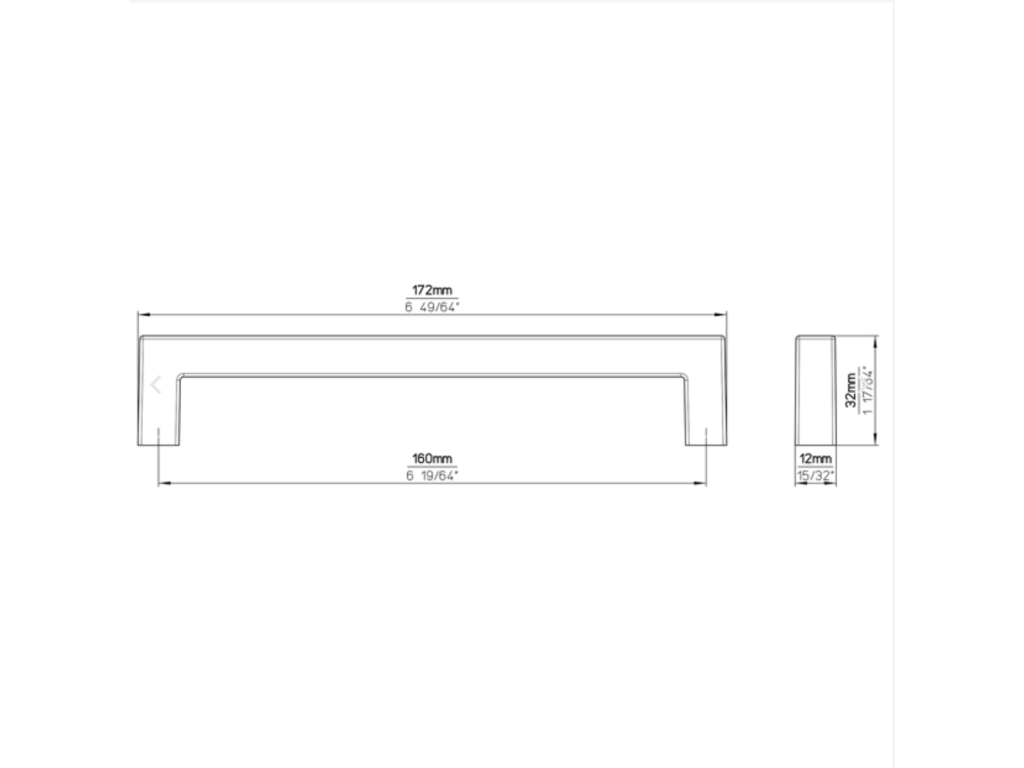 160 mm - šířka 12 mm, výška 32 mm, délka 172 mm