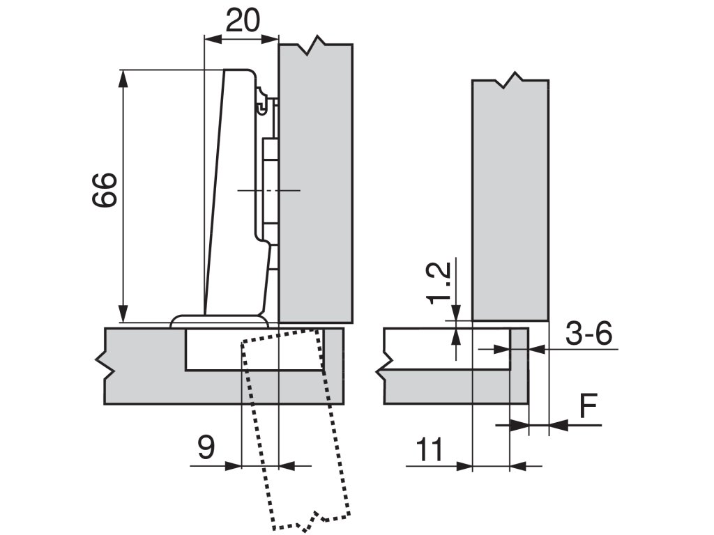 Nábytkový závěs se používá do otvorů s průměrem 35 mm.