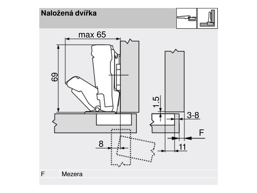 Nábytkový závěs se používá do otvorů s průměrem 35 mm.