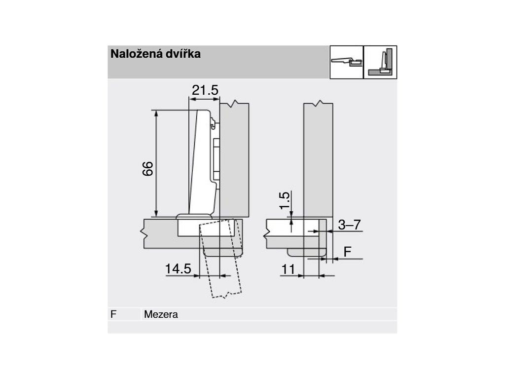Nábytkový závěs se používá do otvorů s průměrem 35 mm.