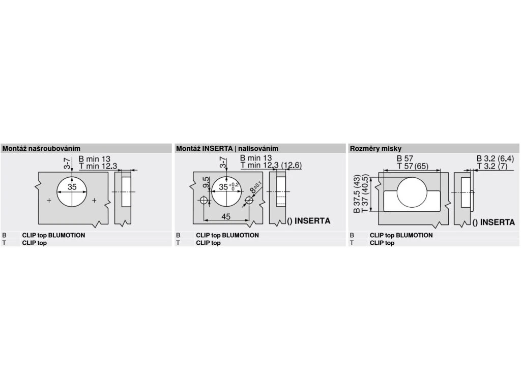 Nábytkový závěs BLUM CLIP od světoznámeho výrobce BLUM. Uchycení závěsu k podložce pomocí šroubů. Snadné a rychlé uchycení závěsu k podložce pomocí klipového mechanizmu, který je kompatibilní s dalšími závěsy BLUM.