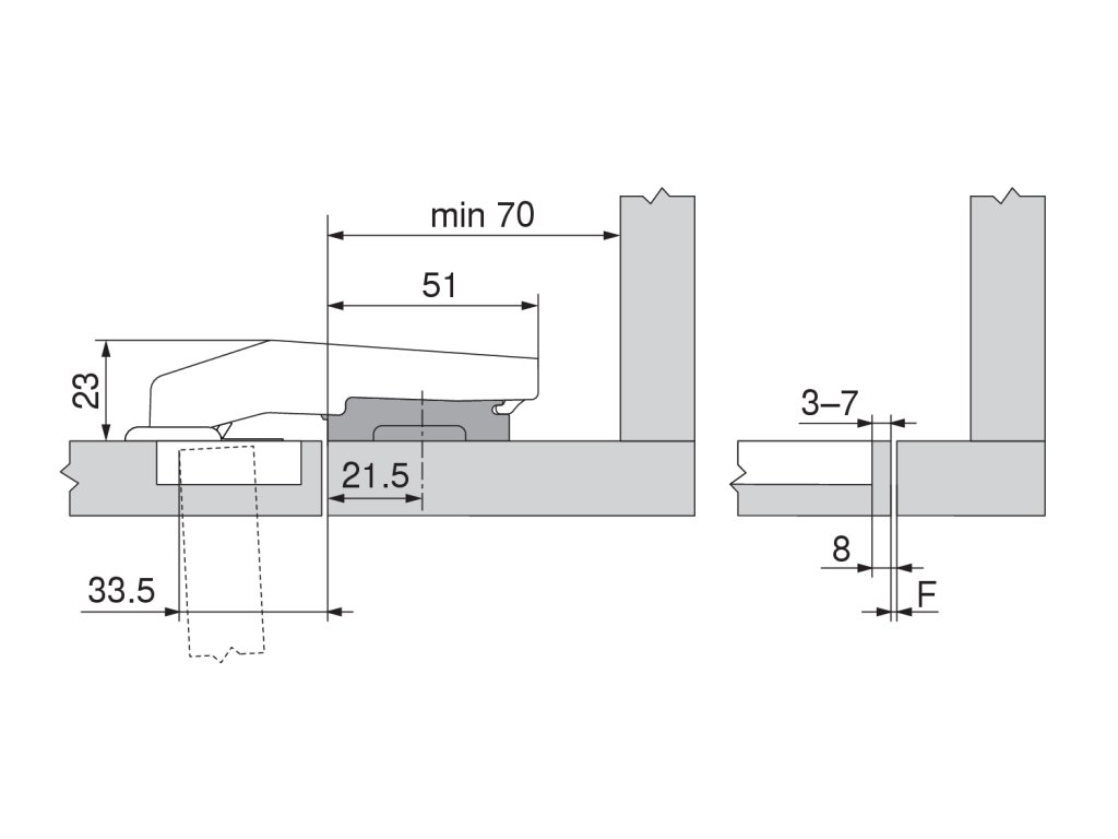Nábytkový závěs se používá do otvorů s průměrem 35 mm.
