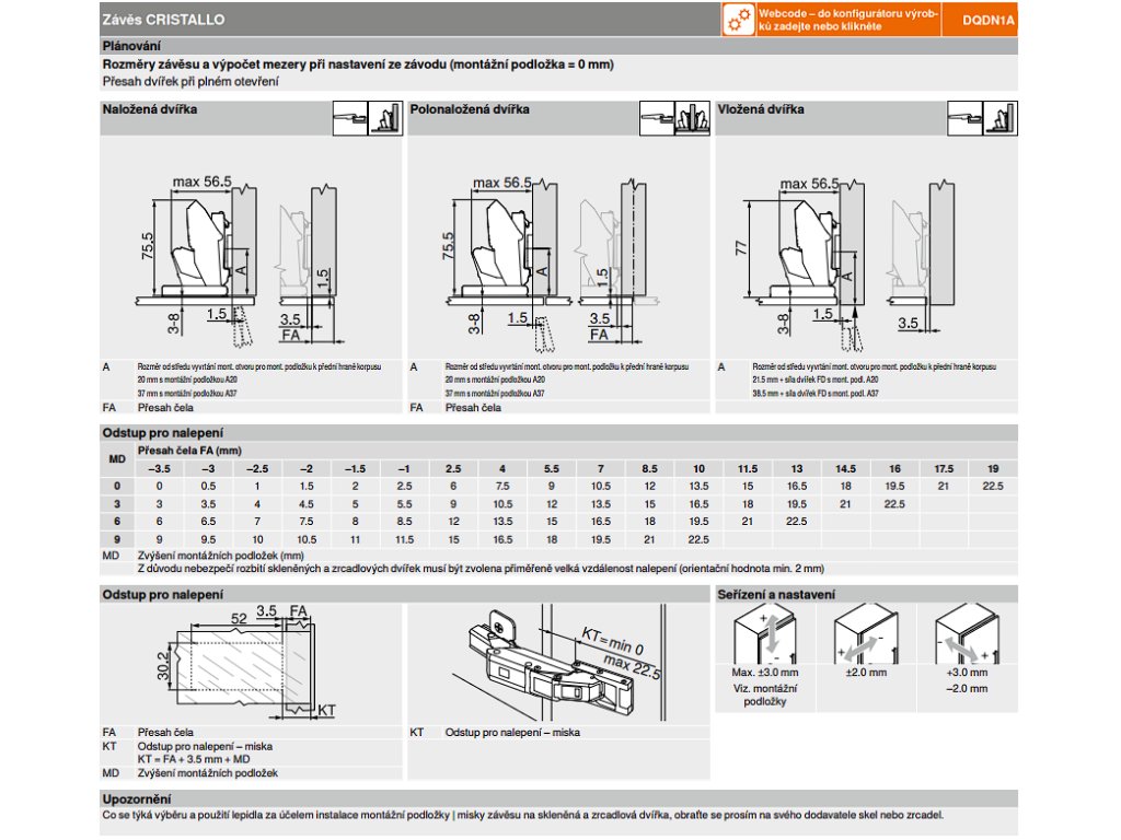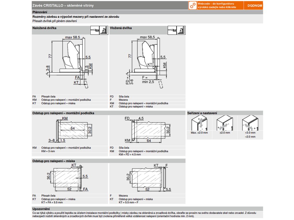 Seřízení pozice dvířka ve třech směrech.