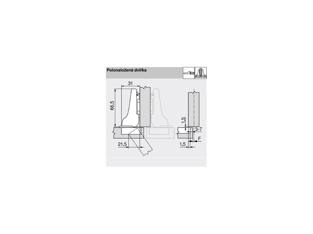 Nábytkový závěs se používá do otvorů s průměrem 35 mm.