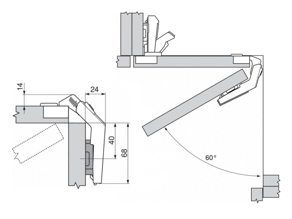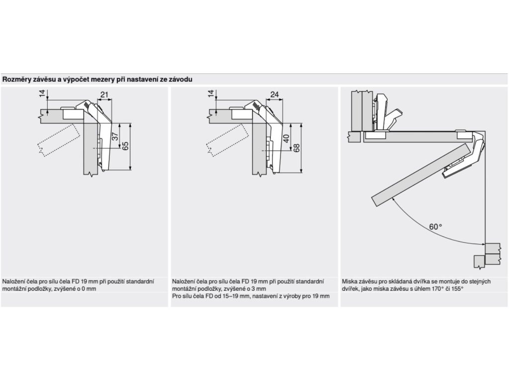 Používá se v kombinaci se závěsem 155° nebo 170° (v souvisejících produktech)