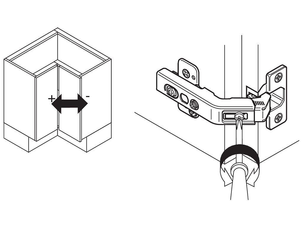 Seřízení pozice dvířka ve třech směrech.