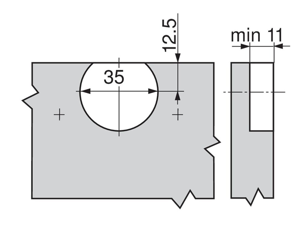 Nábytkový závěs se používá do otvorů s průměrem 35 mm.