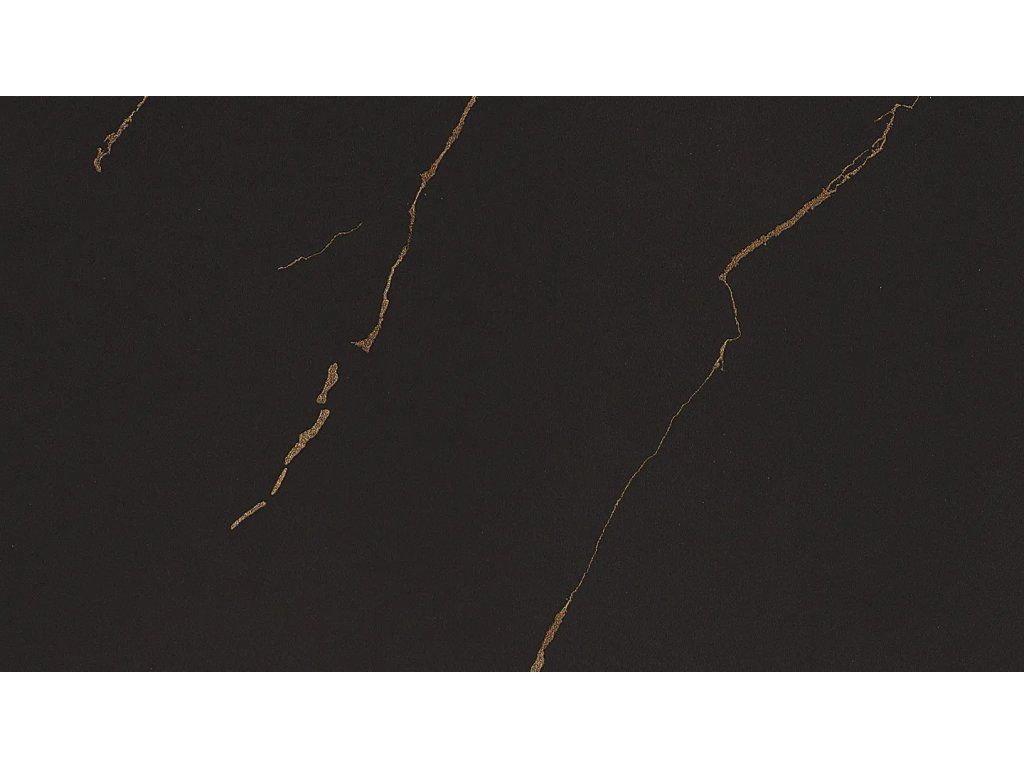 Provedení dekoru F199 Mramor Ambiance černý má vysoce matný povrch, který je zvýrazněn sofistikovaným začleněním zlatých žilek.