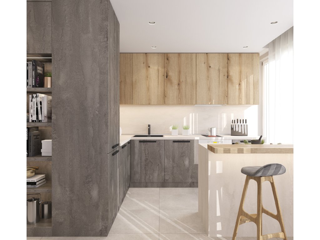Jedná se o moderní provedení kuchyňské desky s rovným okrajem z 1,5 mm ABS hrany, která jí dodává robustní hranatý vzhled. Desky jsou vyrobeny z jádra ze surové dřevotřísky potažené vrstvou dekoračního vysokotlakého laminátu (HPL). Díky jednoduchým a jasnými liniím jsou tyto kuchyňské desky dokonalé pro moderní nebo minimalistické návrhy kuchyní. Jsou ideálním řešením pro moderní kuchyňské pulty, kanceláře i obchody.