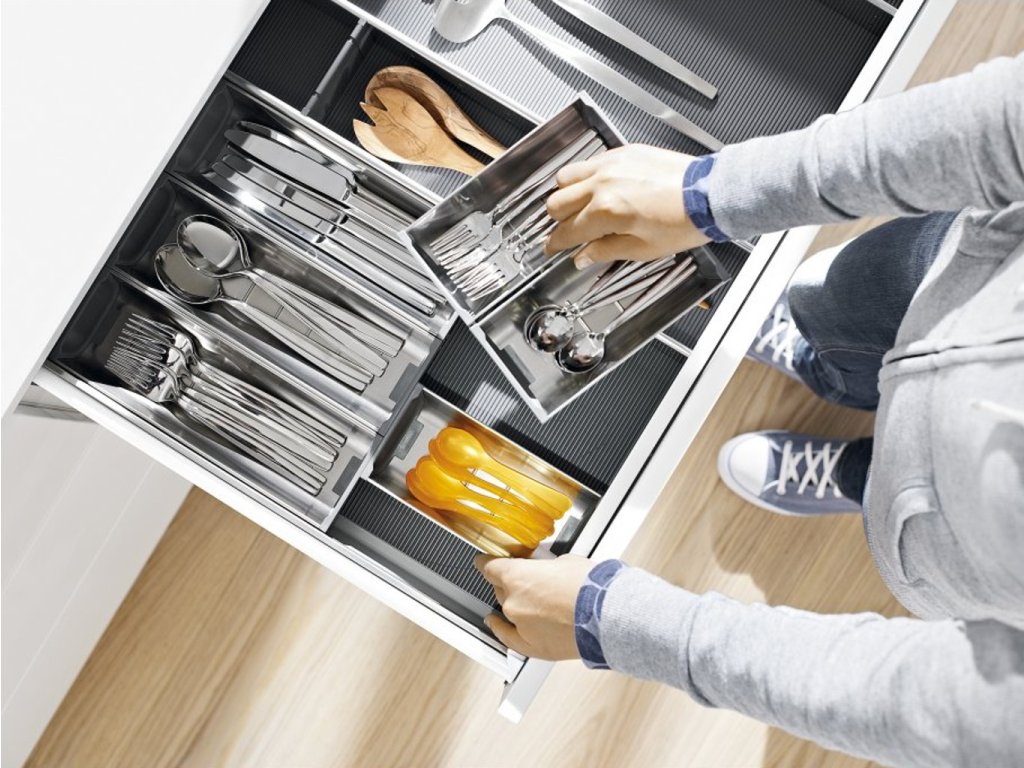 Příborníky BLUM Orga-line jsou použitelné pro všechny zásuvky řady TANDEMBOX, MOVENTO a TANDEM.
