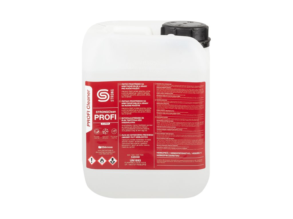 StrongClean PROFI je intenzivní čisticí tekutý přípravek na bázi alkoholu s citrusovou vůnípro odstraňování nejodolnějších nečistot. Díky vysokému obsahu rozpouštědel rychle rozpouští nečistoty, jako jsou zbytky gumy, bitumen, pryskyřice, oleje, zbytky lepidel, oleje, fixy nebo oděrky. Pro finální dočištění matných a lesklých povrchů použijte StrongClean FINISH.