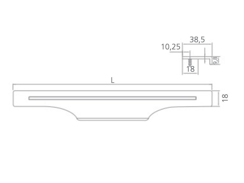 Šířka - na dvířko 18 mm. Tloušťka 1,8 mm. Šířka narážecího profilu cca 2mm.