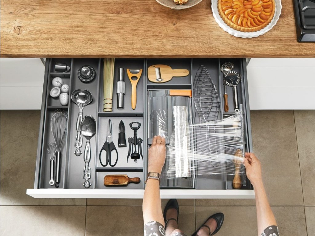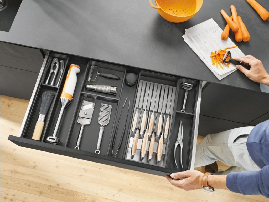 Tento vysoce hodnotný systém vnitřního členění vnese do každé zásuvky či výsuvu skvělý pořádek. Ať už se jedná o příbory, láhve nebo hrnce – uložení veškerých předmětů je tu bezpečné a pohodlné. Uspořádejte si svůj úložný prostor přehledně a podle potřeby.