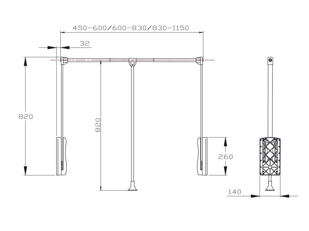 Sklopná šatní tyč černá. Skvělý pomocník do vysokých skříni.