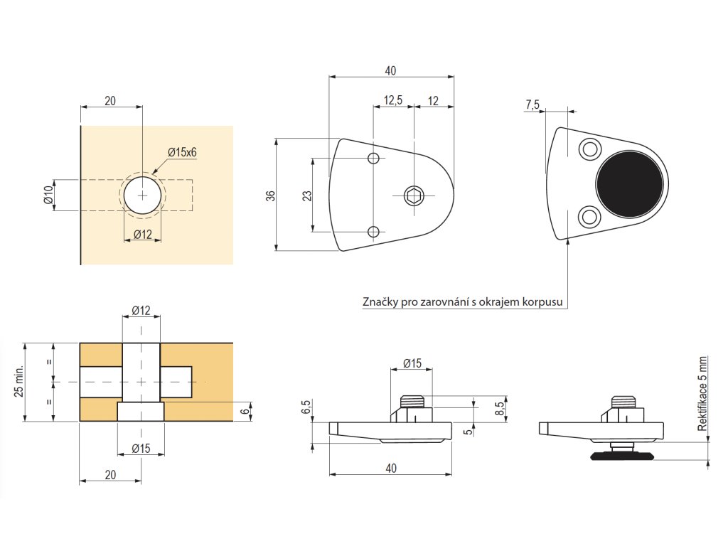 Rektifikační nožka LH7.20. Velmi malý rozměr s vysokou nostností a s mížností rektifikace +5mm ori vyrovnání nerovností.