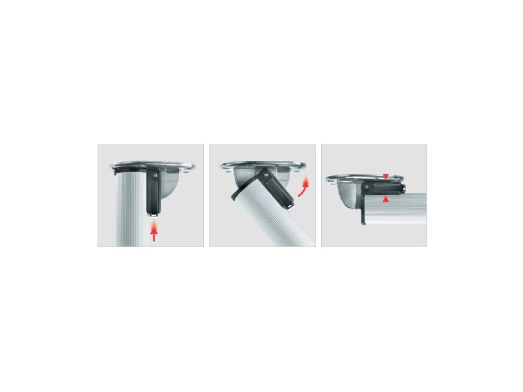 Průměr nohy 50 mm zajistí, že stůl bude stabilní. Součástí balení jsou i litinové příruby s velkým počtem otvorů pro šroubky, tj. připevnění k desce stolu, které jsou zároveň i sklopným mechanizmem. Příruba je navržena tak aby při složeném stavu stůl neškrábal desku dalšího stolu, který na něj položíte a to díky plastovým okrajům příruby.