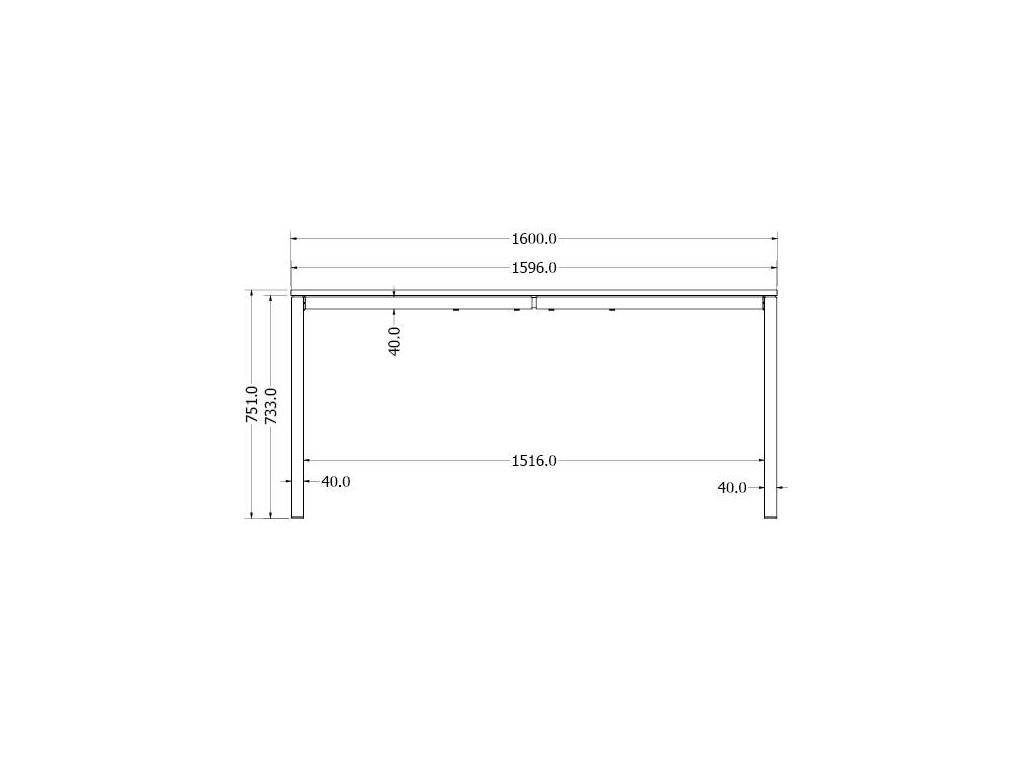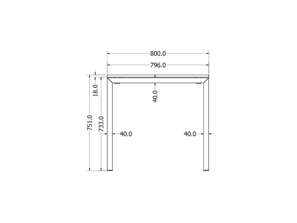- Rozměr profilu: nohy 40 x 40 x 2 mm, příčníky 40 x 40 x 2 mm