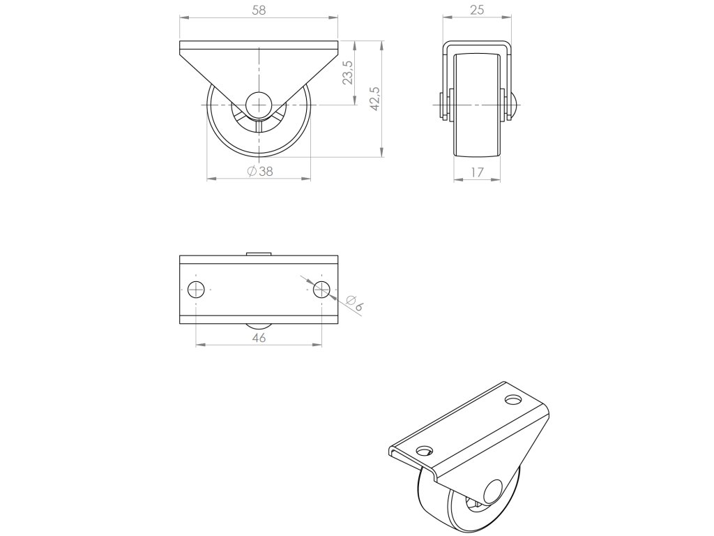 Pevné kolečko, průměr 38 mm, šířka 17 mm